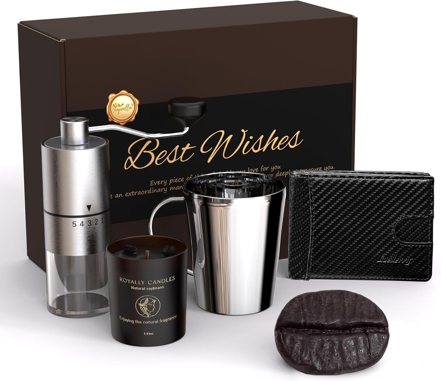 Men’s Gift Basket – Perect for Birthday, Christmas, Employee Appreciation, Thank You & Care Gifts | Includes Manual Grinder, Wallet, Coffee Mug, Coffee Soap & Candle