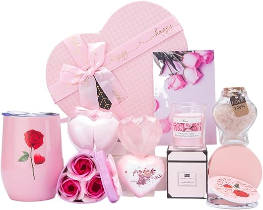 Lovely gift in a heart-shaped box with everything you see in the picture
